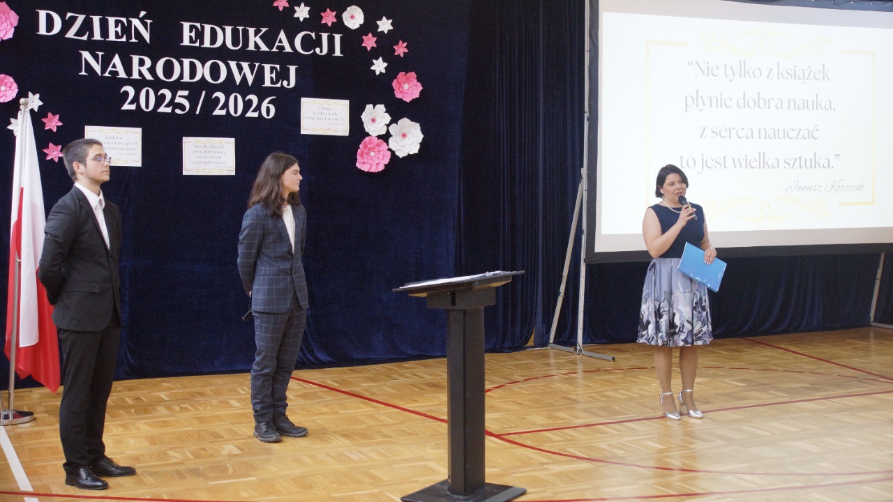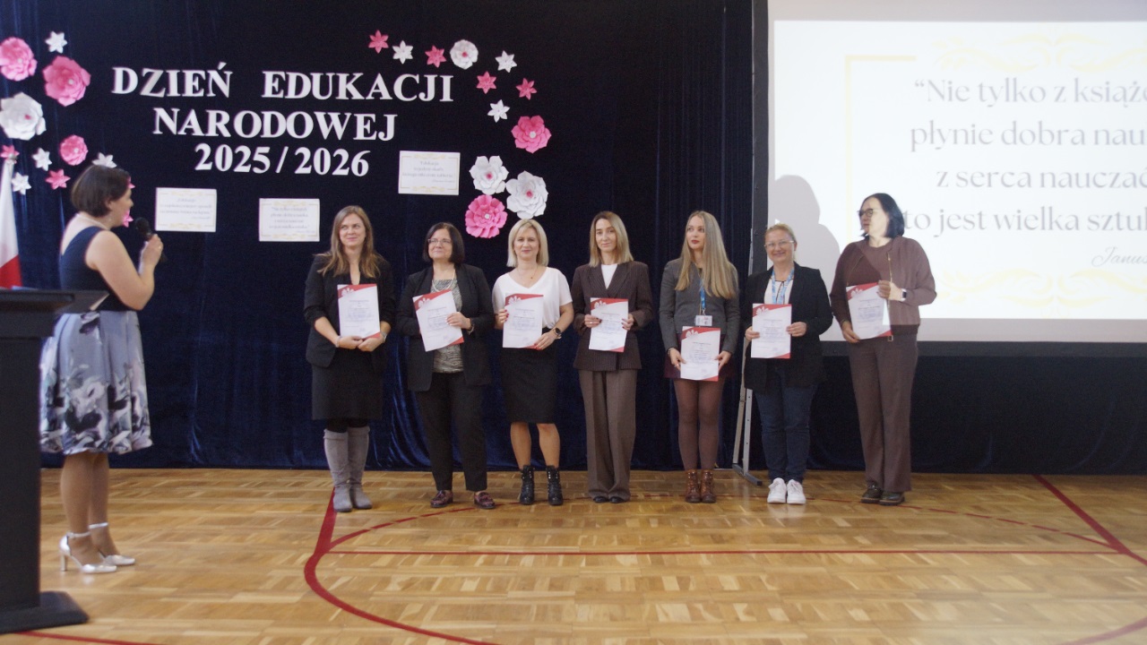 Nie zabrakło również momentów uznania – wręczono nagrody dla nauczycieli oraz wyróżnienie dla ucznia, który zwyciężył w konkursie o historii szkoły i ulicy Mariana Seredyńskiego.