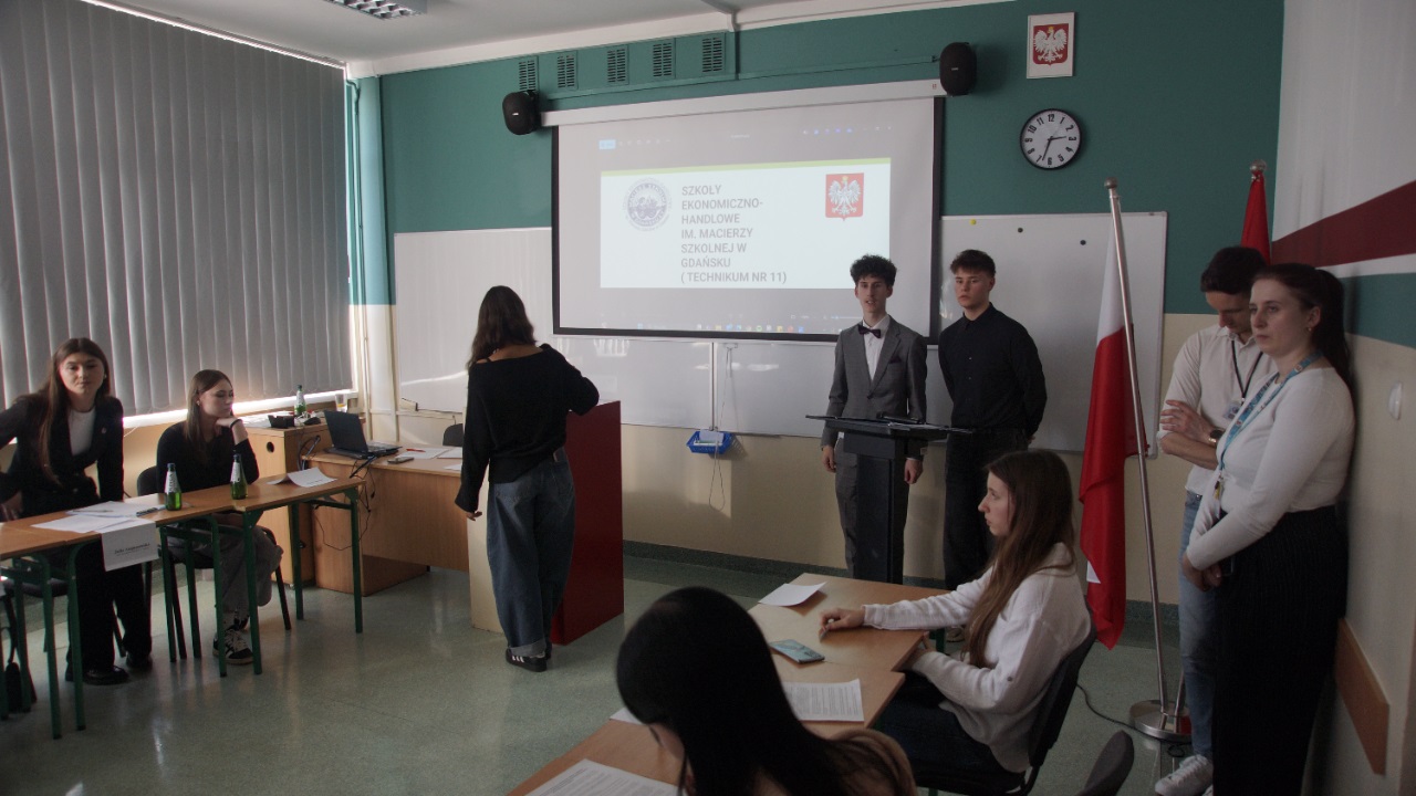 W dniu 03.03.2026 r. w Szkołach Ekonomiczno-Handlowych odbyły się wybory do Młodzieżowej Rady Miasta. Elektorzy zaprezentowali 2-minutową prezentację przyjętą owacjami. Z pośród osiemnastu kandydatów do Młodzieżowej Rady Miasta wybrano osiem mandatów w tym dwie nasze kandydatki B. Worzała i J. Augustowska.